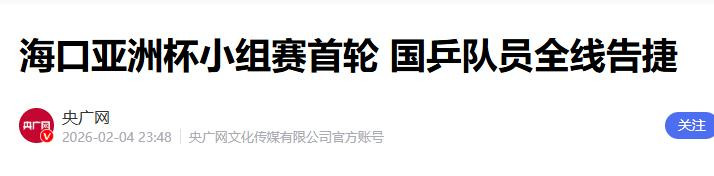 首场比赛在2月4日开打,用一个词回来国乒的进展,那等于:开门红!