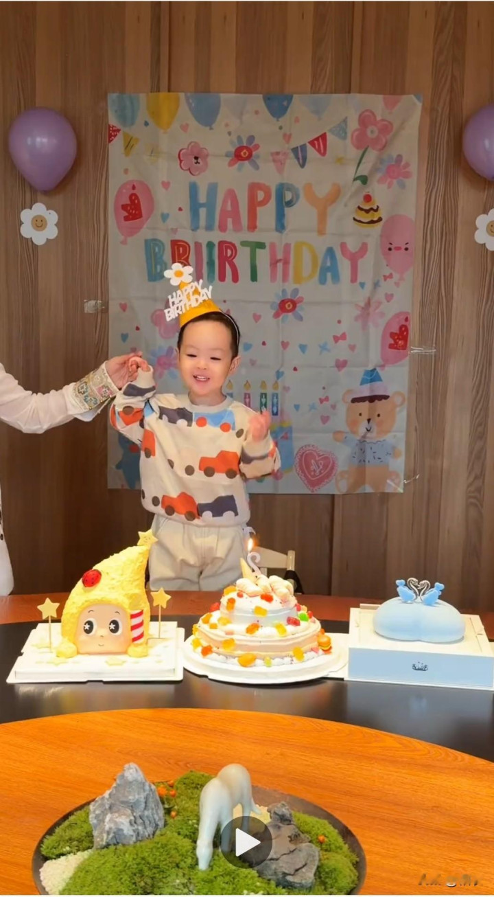 布景是从简的木质墙面,挂着彩色的生辰自傲条幅,搭配紫色气球与白色小花窒碍,吩咐浅易却充满童趣,和闲居家庭给孩子过生辰的表情没什么两样,朴实却又暖心。