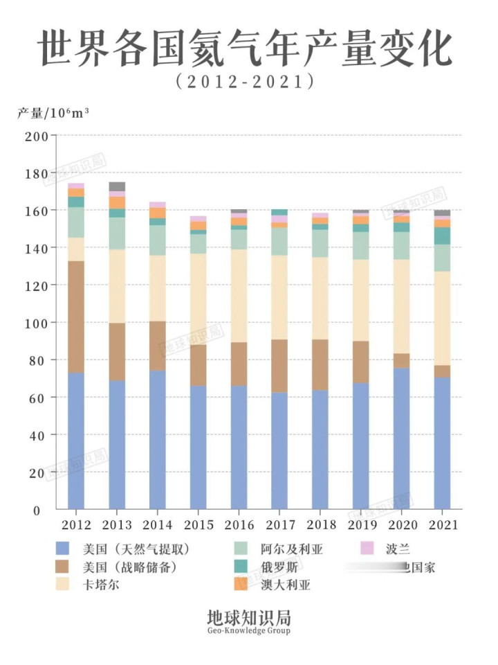 由于氦气的用途主要在半导体制造、核磁共振、航空航天。寰球上的用氦大国,都是玩儿得起高端产业的,也无数有一定氦气储备。