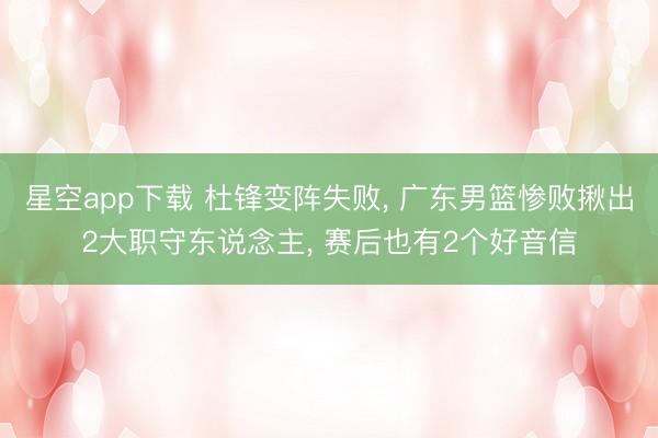 星空app下载 杜锋变阵失败, 广东男篮惨败揪出2大职守东说念主, 赛后也有2个好音信