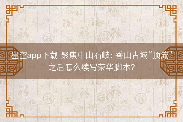 星空app下载 聚焦中山石岐: 香山古城“顶流”之后怎么续写荣华脚本?