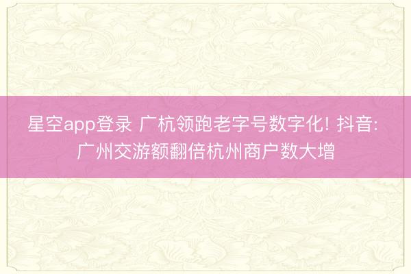 星空app登录 广杭领跑老字号数字化! 抖音: 广州交游额翻倍杭州商户数大增