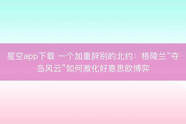 星空app下载 一个加重辞别的北约:格陵兰“夺岛风云”如何激化好意思欧博弈