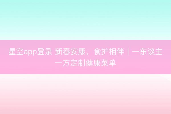 星空app登录 新春安康,食护相伴|一东谈主一方定制健康菜单