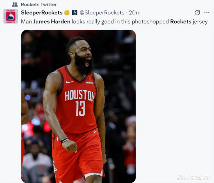 休媒SR写谈:这张哈登“PS”的火箭球衣相片看起来他的情状额外之好。