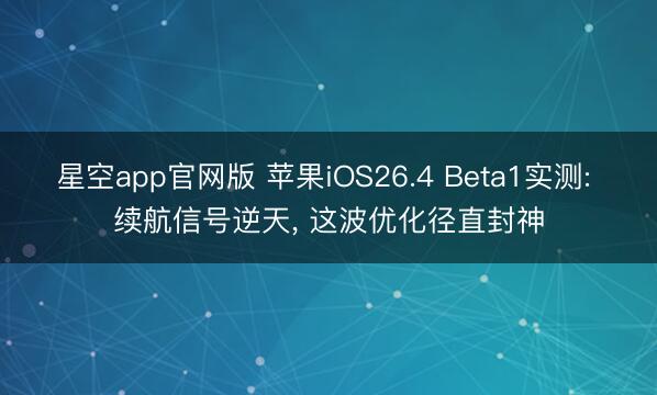 星空app官网版 苹果iOS26.4 Beta1实测: 续航信号逆天, 这波优化径直封神