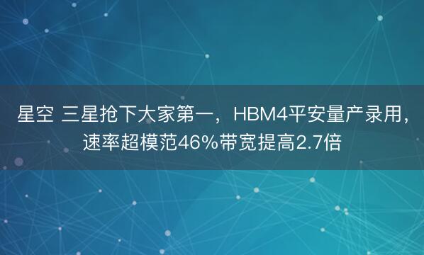 星空 三星抢下大家第一,HBM4平安量产录用,速率超模范46%带宽提高2.7倍