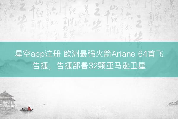 星空app注册 欧洲最强火箭Ariane 64首飞告捷,告捷部署32颗亚马逊卫星