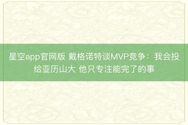 星空app官网版 戴格诺特谈MVP竞争:我会投给亚历山大 他只专注能完了的事