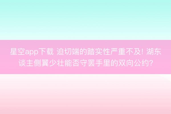 星空app下载 迫切端的踏实性严重不及! 湖东谈主侧翼少壮能否守罢手里的双向公约?