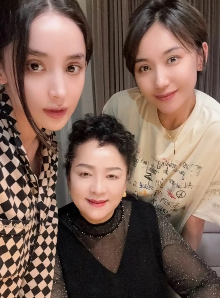 星空app 古力娜扎和姆妈姐姐合影, 母女仨颜值齐好高, 姐妹俩长得大略
