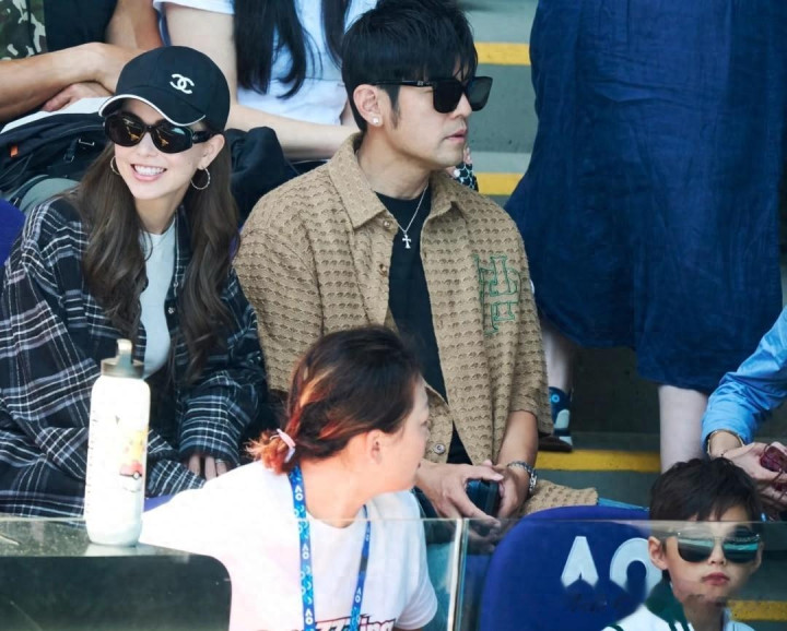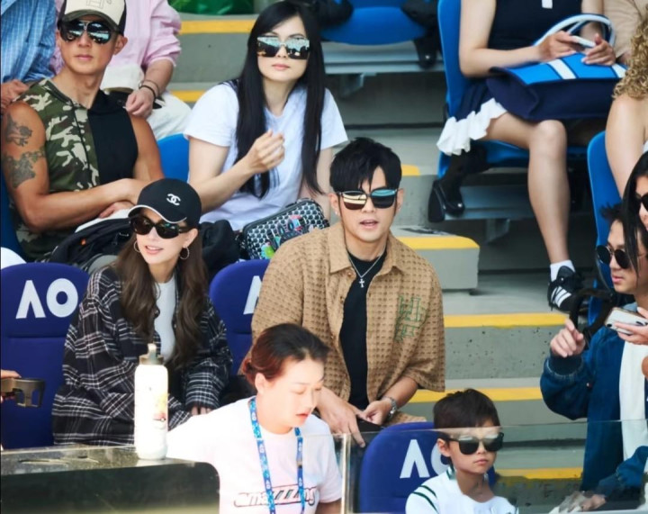 媒体的镜头捕捉到了一个孩子:周杰伦昆凌犬子罗密欧,正脸曝光。穿网球服、戴墨镜,跟周杰伦一样酷,小脸色和心思齐跟周杰伦如出一辙。坐在周杰伦和昆凌前边那一转。