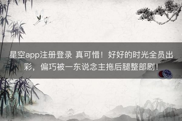 星空app注册登录 真可惜!好好的时光全员出彩,偏巧被一东说念主拖后腿整部剧!