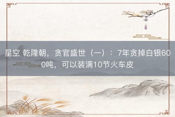 星空 乾隆朝,贪官盛世(一):7年贪掉白银600吨,可以装满10节火车皮