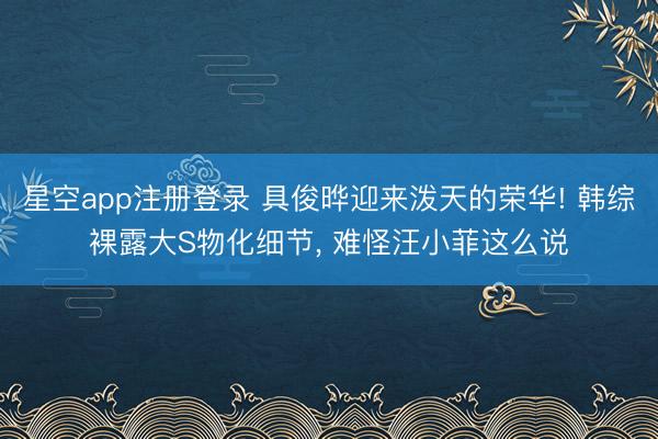 星空app注册登录 具俊晔迎来泼天的荣华! 韩综裸露大S物化细节, 难怪汪小菲这么说