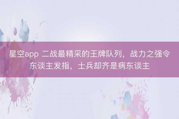 星空app 二战最精采的王牌队列,战力之强令东谈主发指,士兵却齐是病东谈主