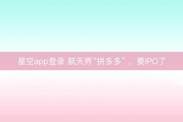 星空app登录 航天界“拼多多” ,要IPO了