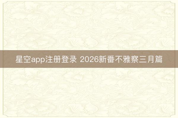 星空app注册登录 2026新番不雅察三月篇