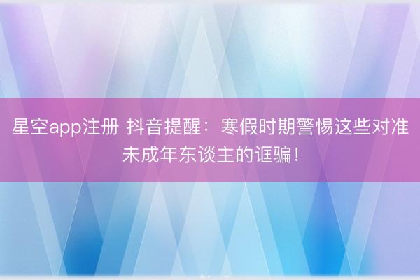 星空app注册 抖音提醒:寒假时期警惕这些对准未成年东谈主的诓骗!