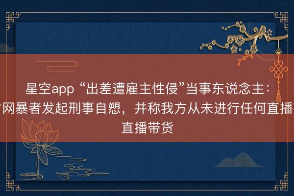 星空app “出差遭雇主性侵”当事东说念主:将对网暴者发起刑事自愬,并称我方从未进行任何直播带货