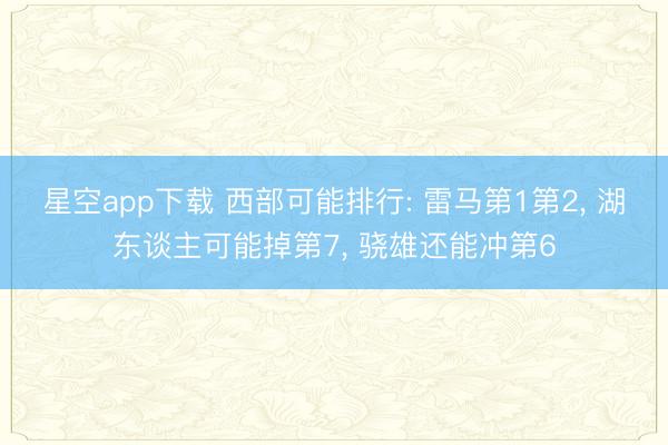 星空app下载 西部可能排行: 雷马第1第2, 湖东谈主可能掉第7, 骁雄还能冲第6