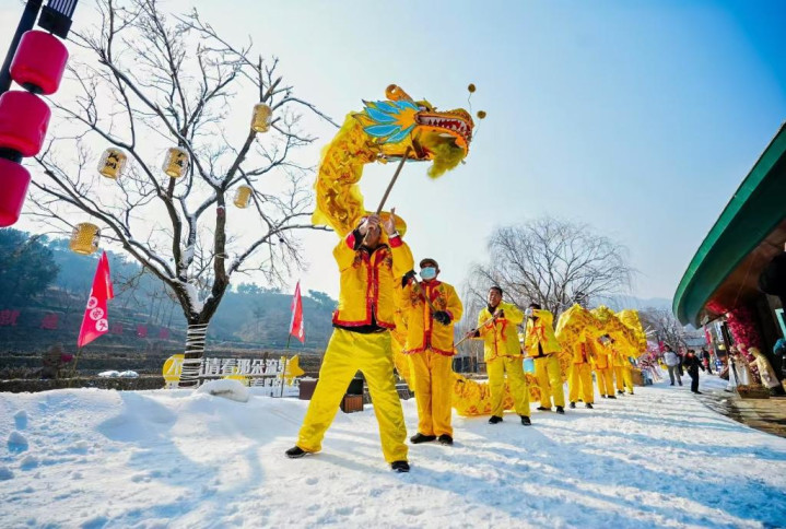 春节假期技巧,星空app官网版“遇山半里”乡村振兴片区举行舞龙活动
