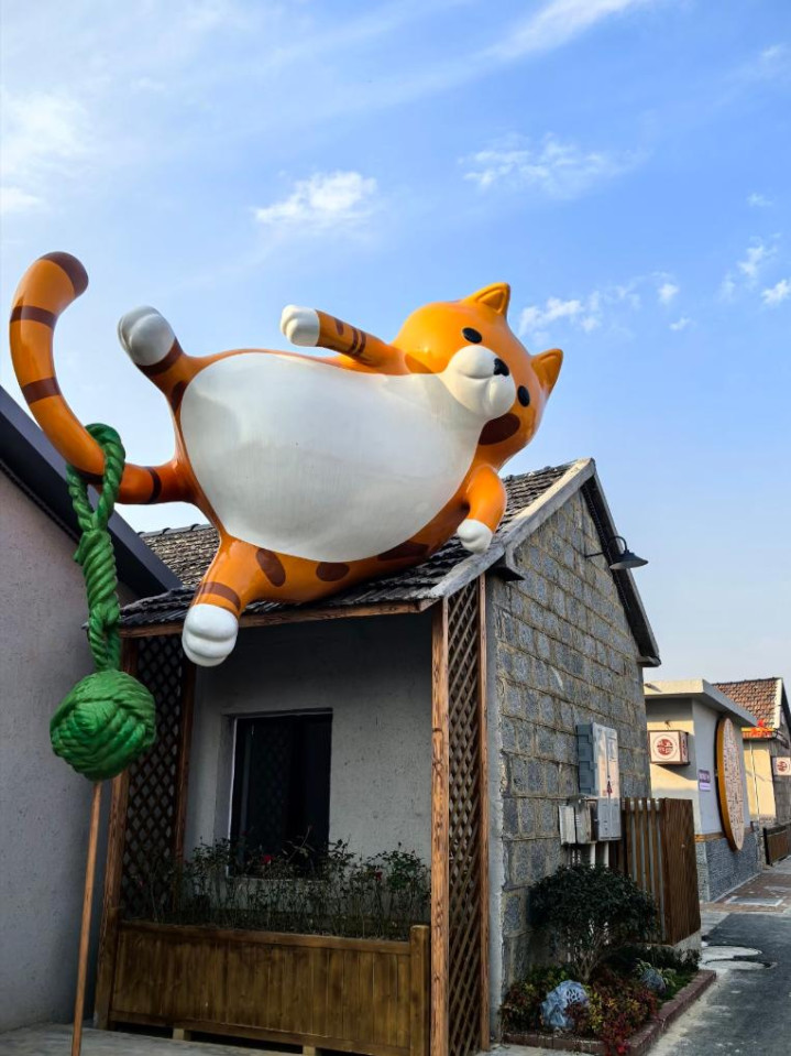 “遇山半里”乡村振兴片区“猫冬小院”民宿外的雕镂