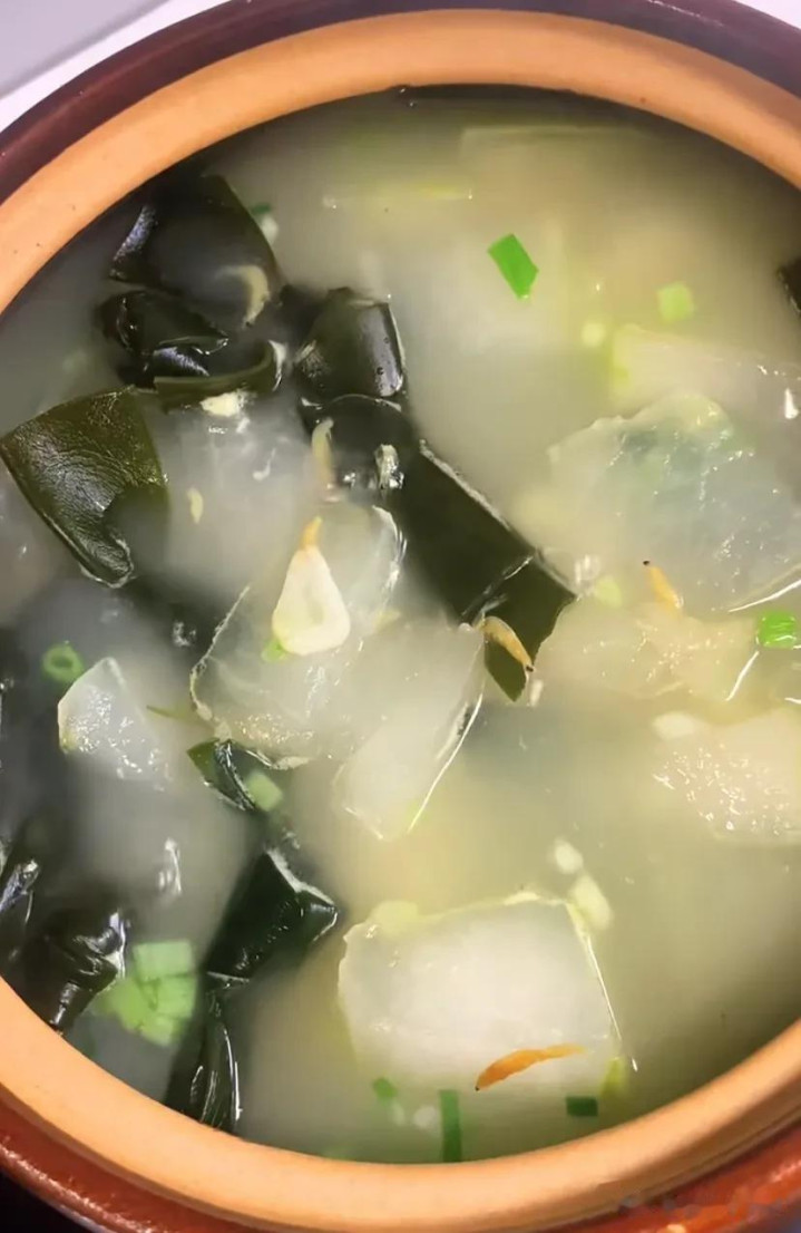 功效:冬瓜利水消肿、清湿排浊,搭配海带软坚利湿,缓解潮湿带来的腿脚浮肿、形体千里坠感,低脂清淡,三高手群也合适。