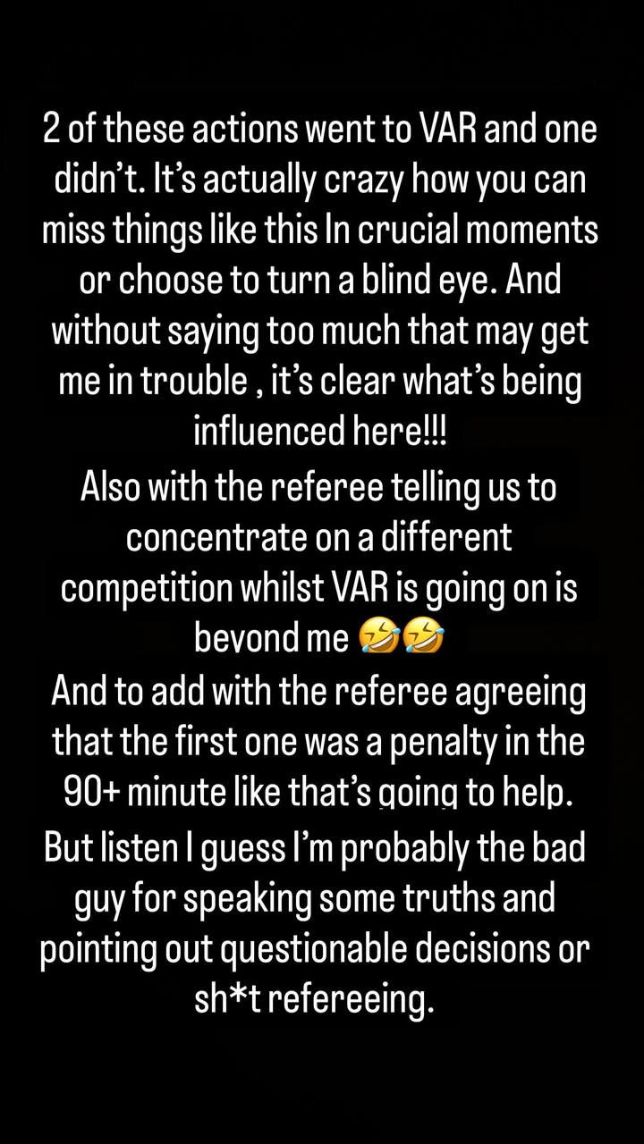 赛后,伊万-托尼更新社媒抗议判罚并贴出了本场争议判罚的片断,口吻利弊。