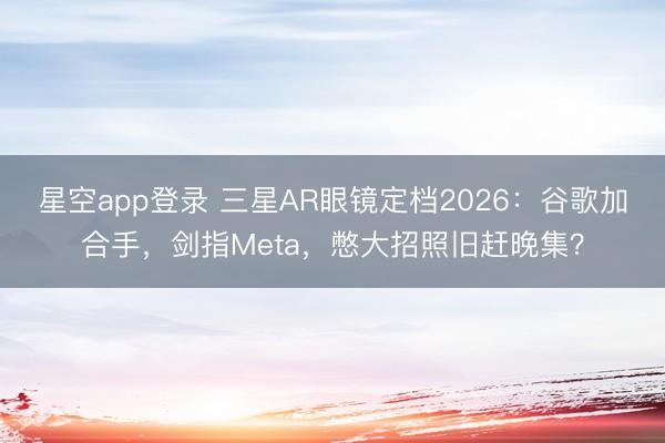 星空app登录 三星AR眼镜定档2026:谷歌加合手,剑指Meta,憋大招照旧赶晚集?
