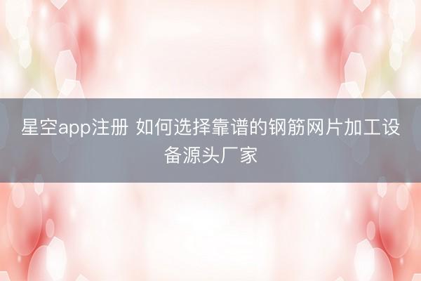 星空app注册 如何选择靠谱的钢筋网片加工设备源头厂家