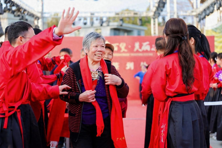 为保险老东说念主平安参与,组委会作念足贴快慰排:为每位老东说念主配备专属志愿者全程陪护,宴席主打软烂易消化的客家特质菜品,现场建立临时医疗点,3名医护东说念主员随时待命。晚会现场,志愿者搀扶老东说念主走红毯、学生代表行弟子礼、商会代表团逐个向前问候,让传统孝说念文化在互动中世代相传。组委会奉上御寒领巾与新春礼包等暖心行动,让老东说念主们倍感暄和,“活了一辈子,第一次参加这样吵杂的宴集,感受到这样多怜惜,心里比蜜还甜。”一位百岁老东说念主的感叹,说念出了悉数参会父老的心声。