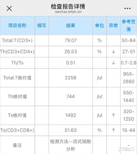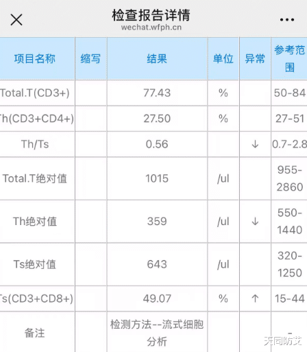 现时 CD4、CD8、总 T 细胞全部属降,是病毒被压住后,免疫系统 “退烧、放心下来,回反平淡使命情景”;
