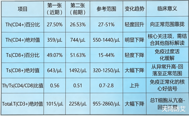 推行:CD8 的着落幅度(-56.8%)盛大于 CD4 的着落幅度(-51.7%),证据免疫失衡在抓续校正,是调理灵验的铁证。