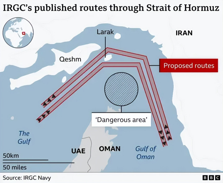 因为他们之前宣称在海峡中线和阿曼一侧布下了水雷,船只必须绕行伊朗一侧才安全,极度是还要求货轮交钱智商通过。