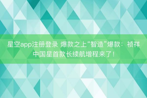 星空app注册登录 爆款之上“智造”爆款:祯祥中国星首款长续航增程来了!