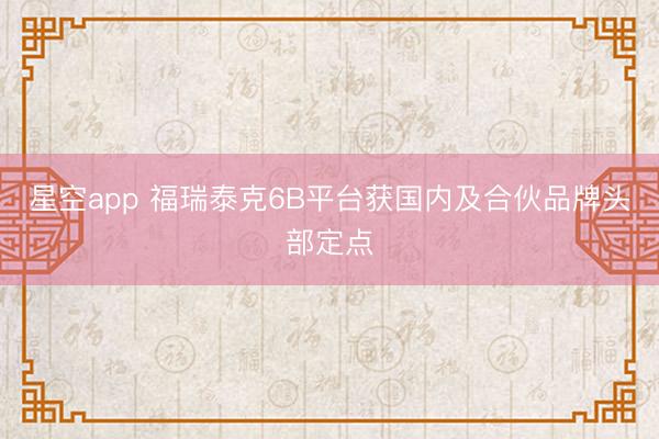 星空app 福瑞泰克6B平台获国内及合伙品牌头部定点