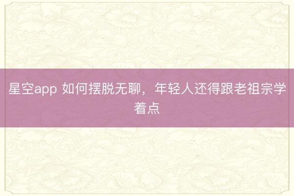 星空app 如何摆脱无聊,年轻人还得跟老祖宗学着点